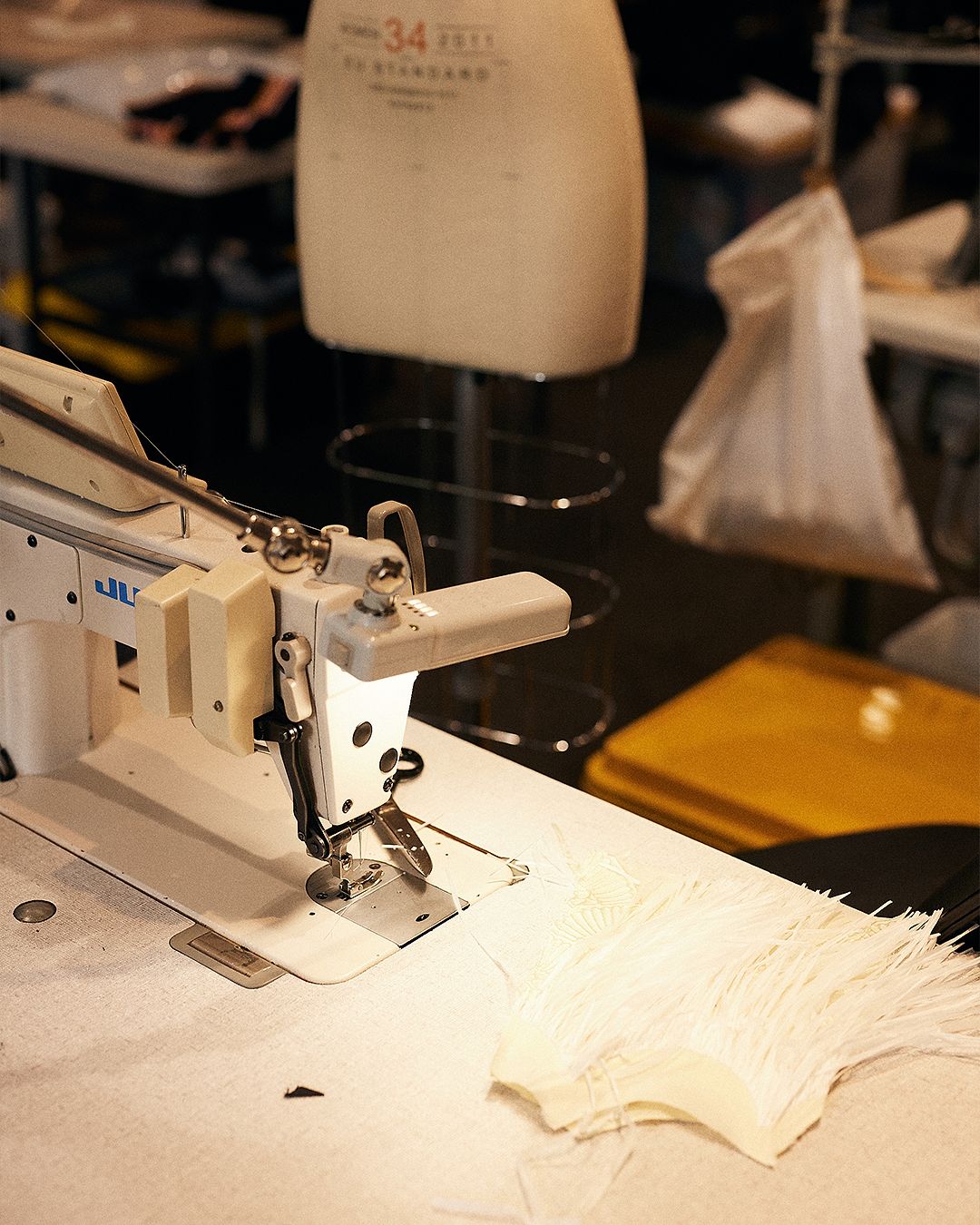 Drawing influence from the artistic era of ‘Années Folles’, the final look designed for Kate Waterhouse is an homage to the refinement of art deco ornamentations, where dancing gowns displayed fringing, beading and the organic feel of the raffia.