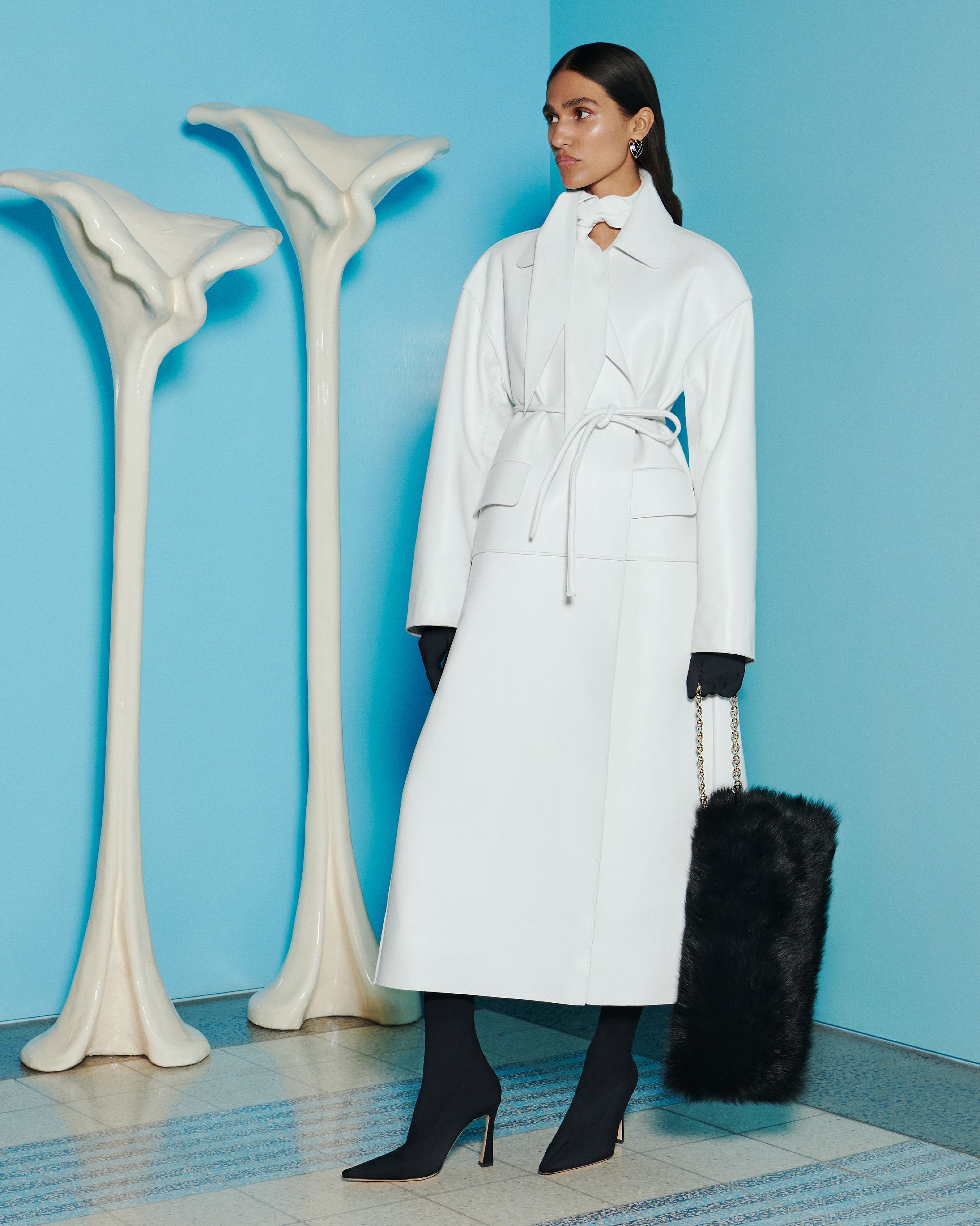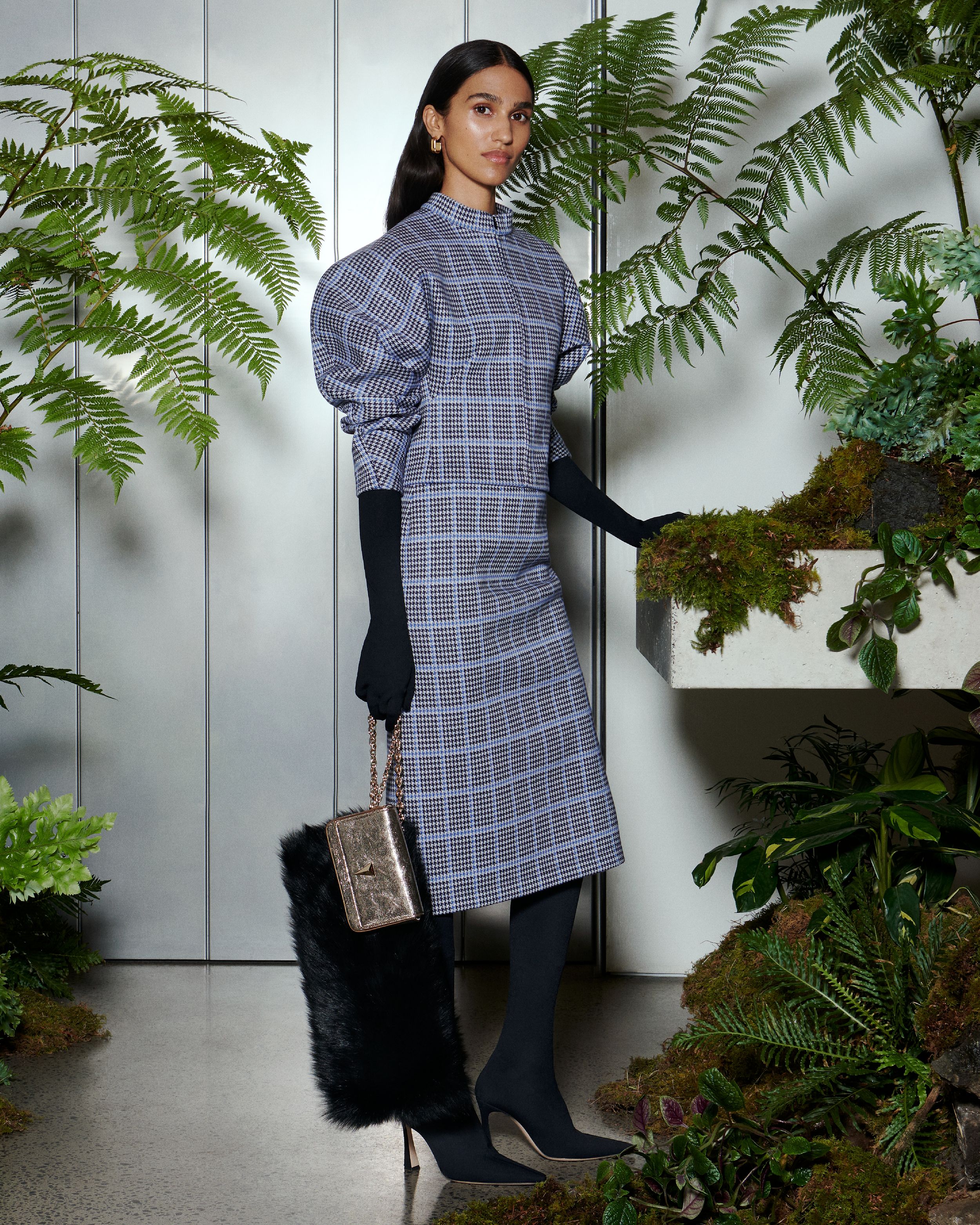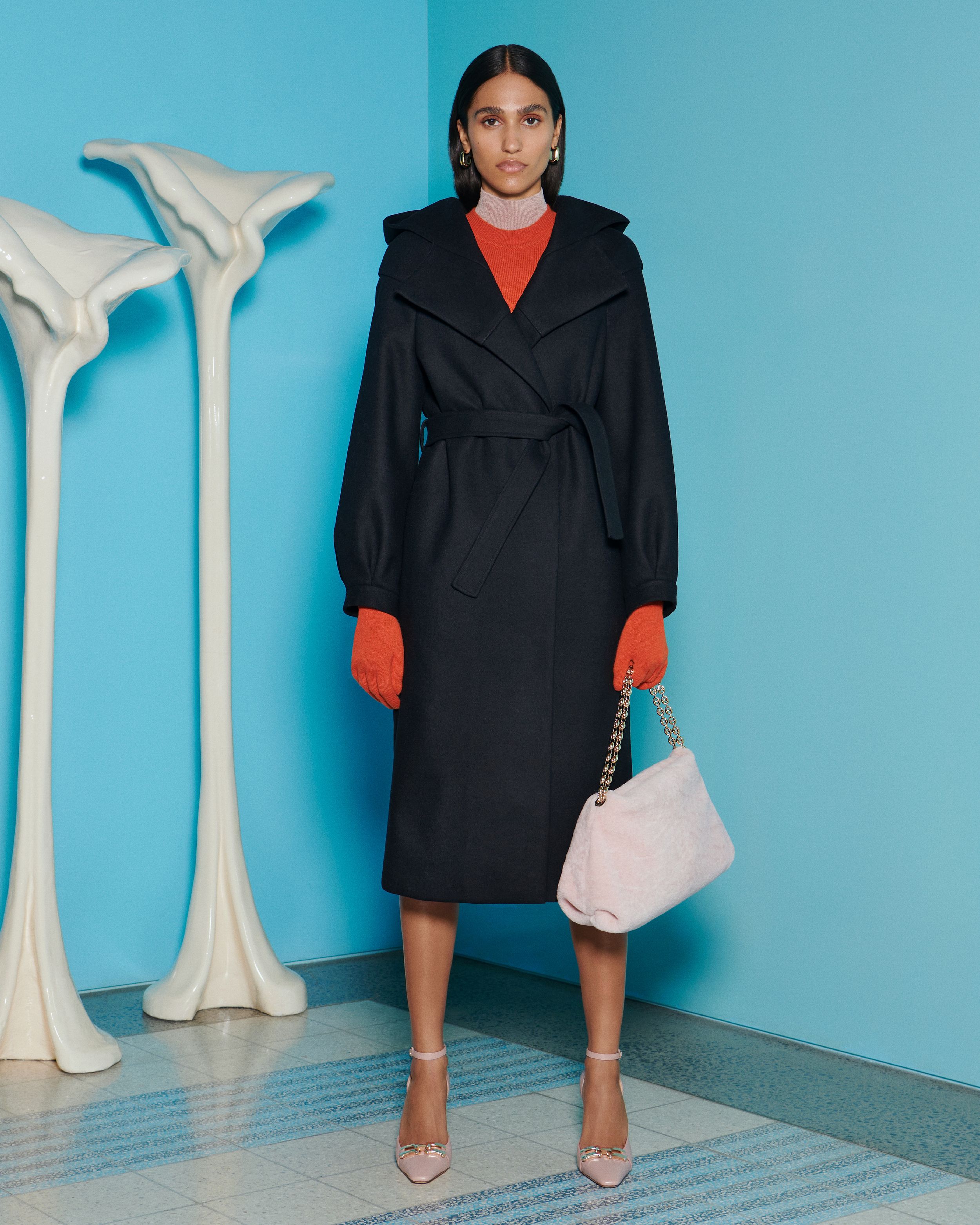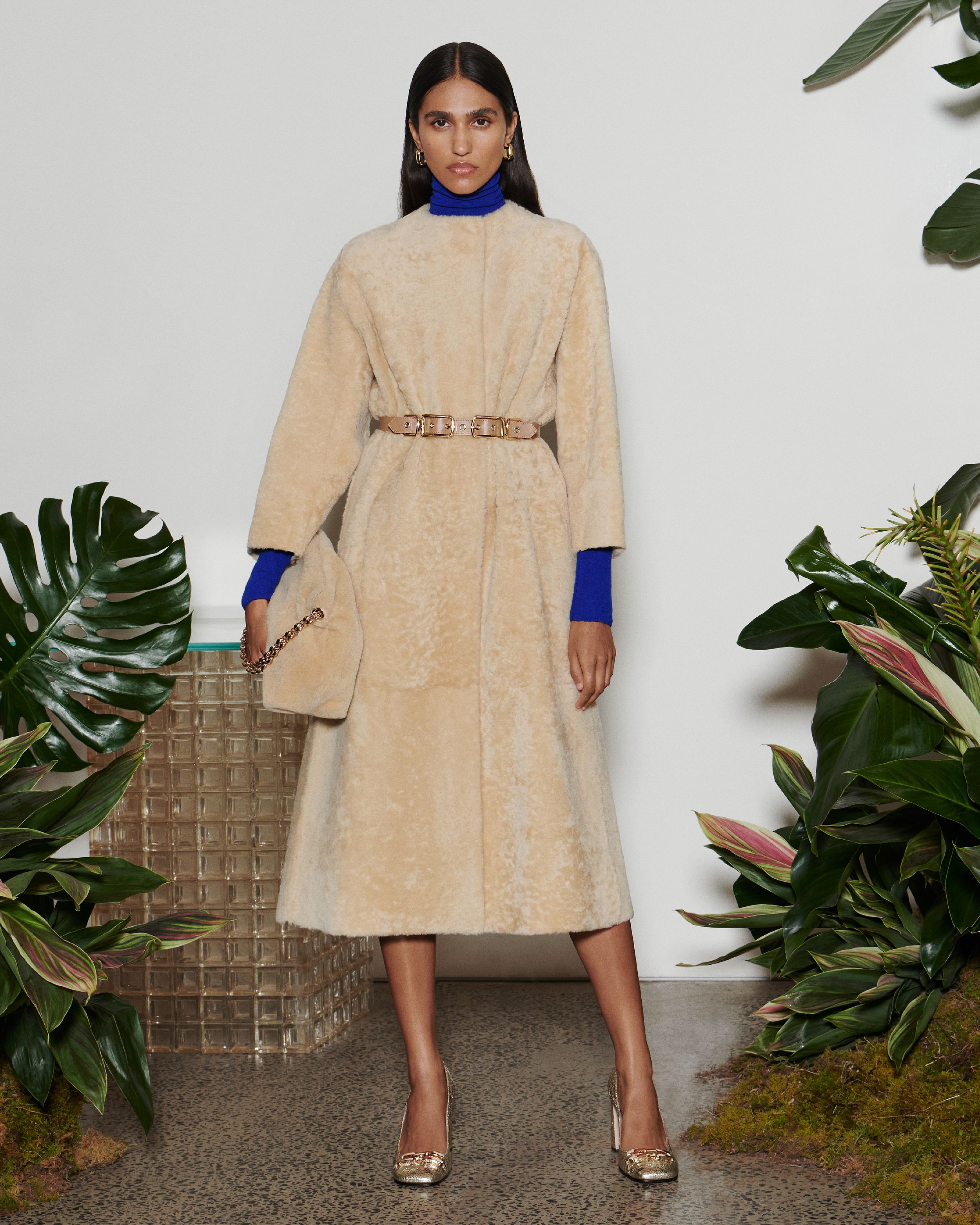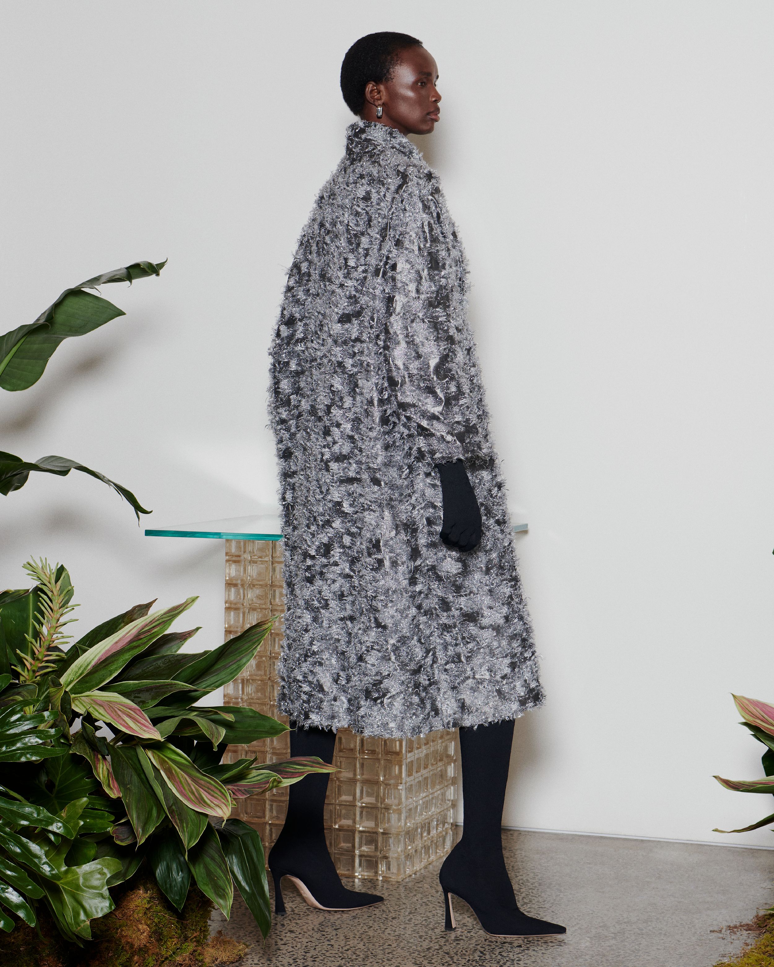 Shades of silver, cinnamon and pale blue are grounded amongst navy, black and white. Exaggerated cocoon shapes and oversized proportions are effortlessly balanced with contemporary accessories and luxurious footwear. Under the design direction of Gary Theodore and Maria Sita, the collection reaffirms the brand’s affinity for modernity and elegance.