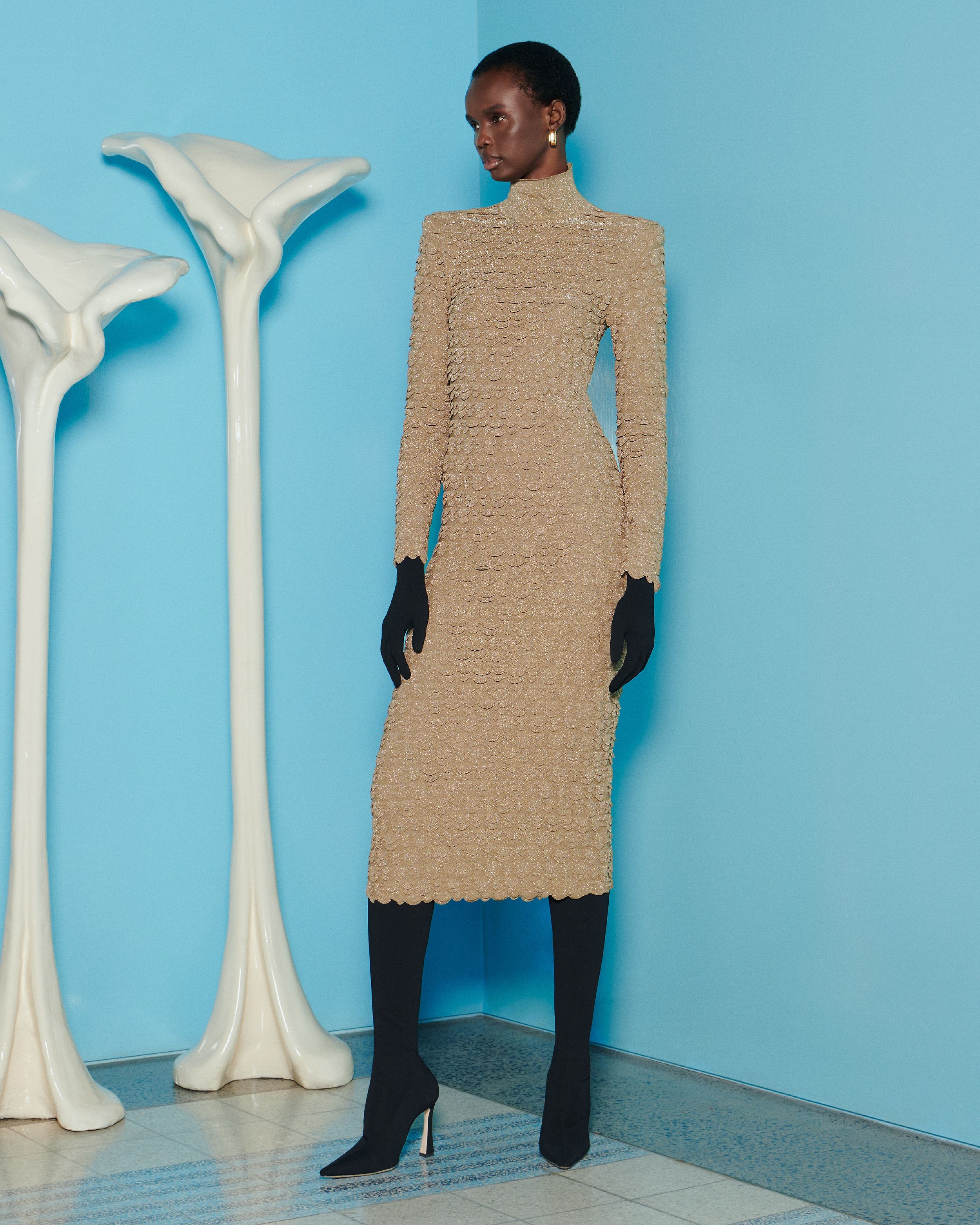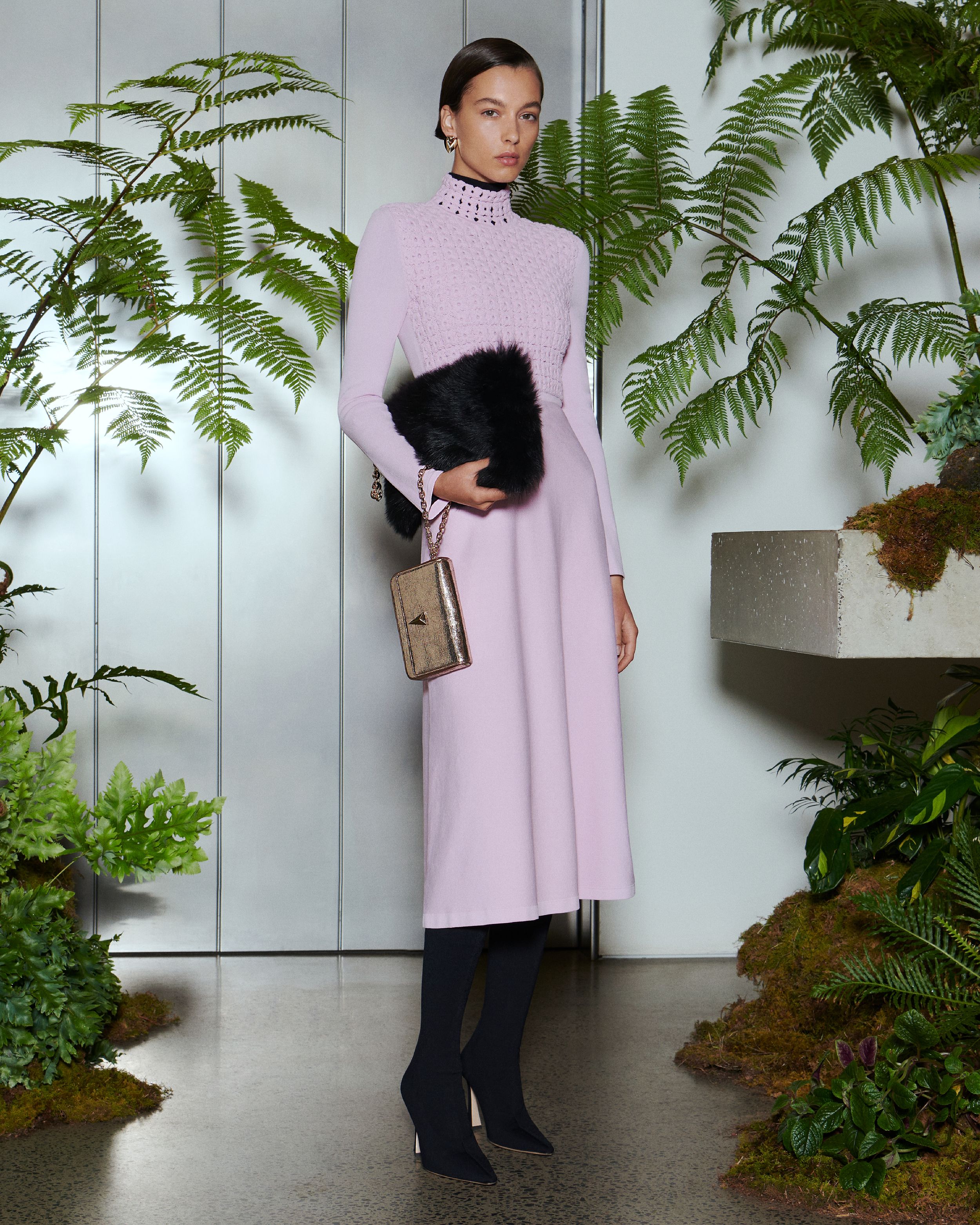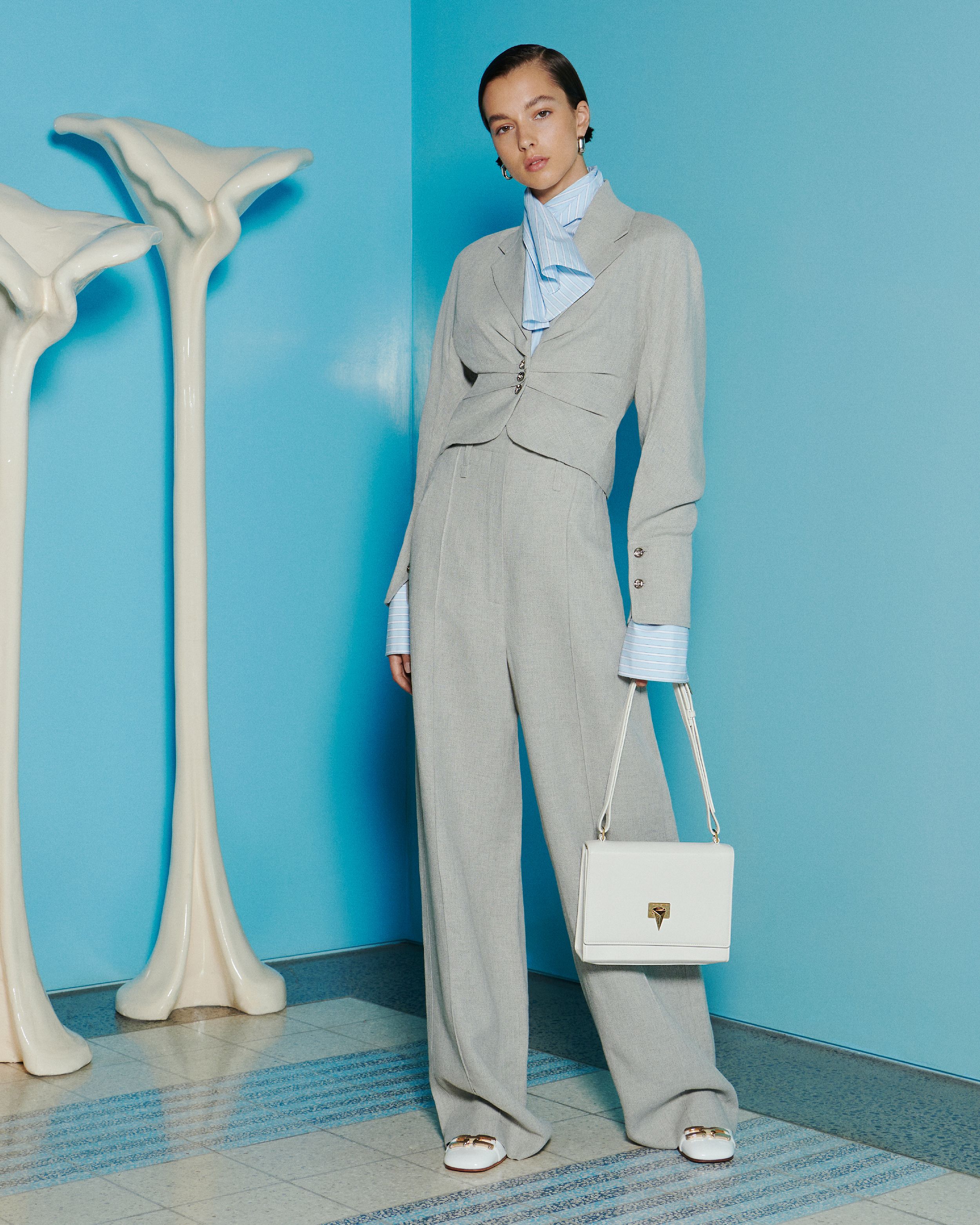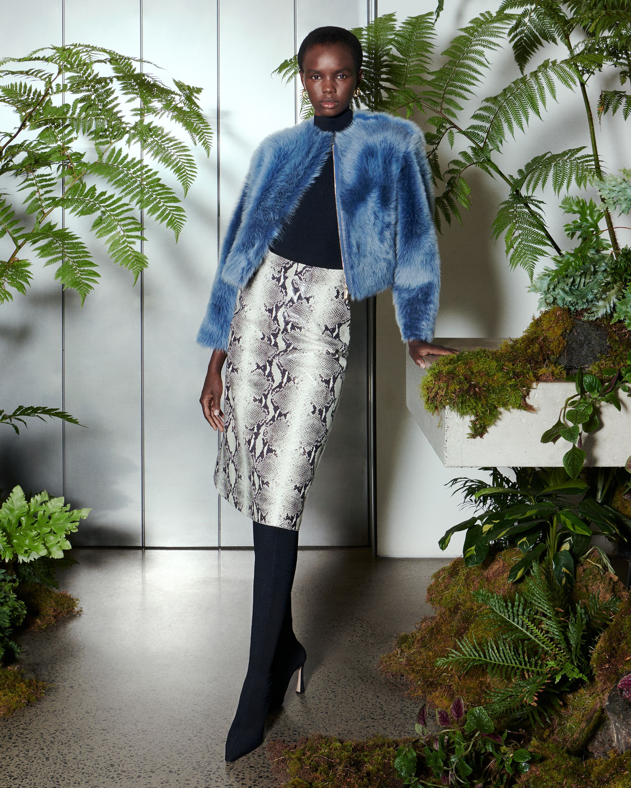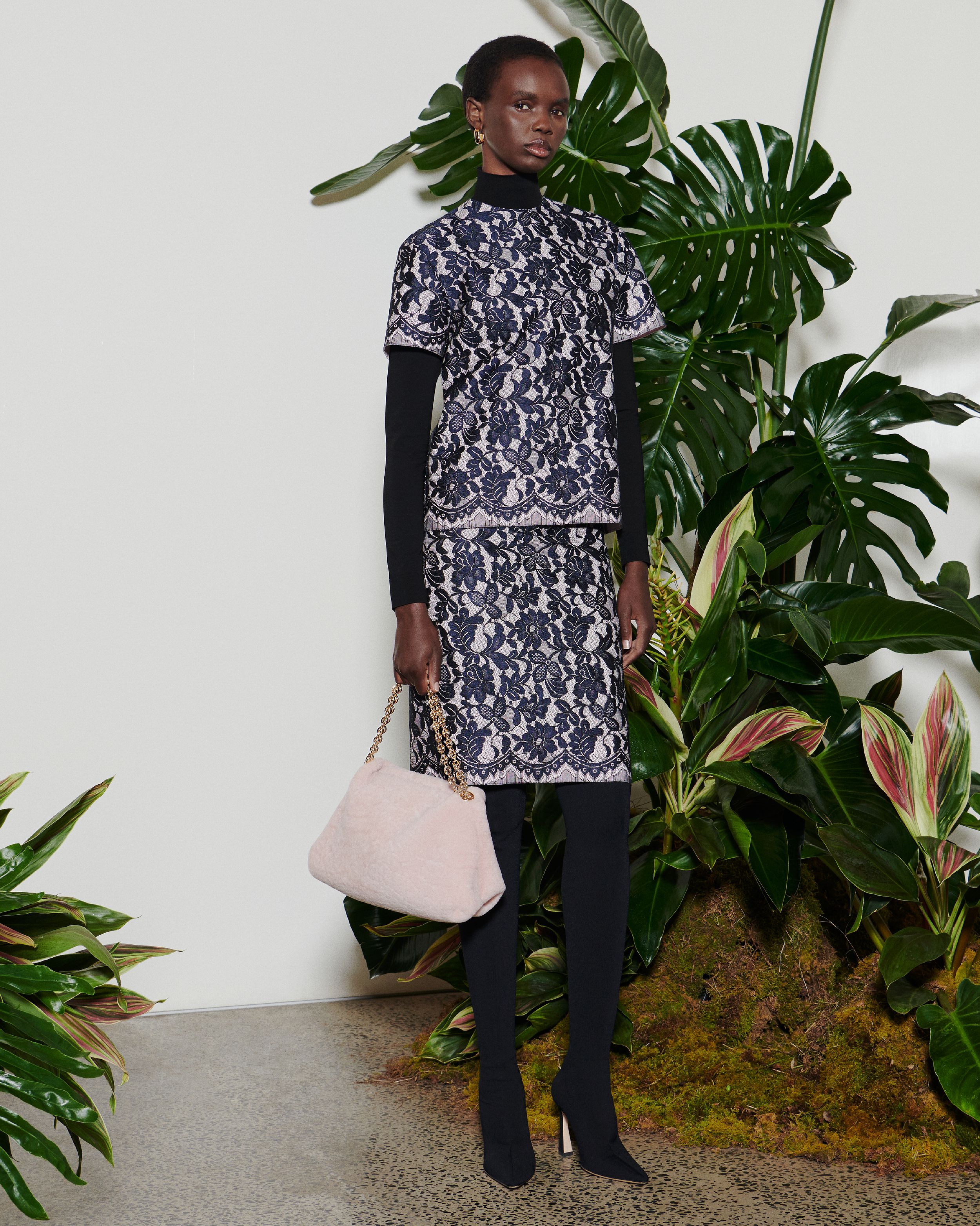 Shades of silver, cinnamon and pale blue are grounded amongst navy, black and white. Exaggerated cocoon shapes and oversized proportions are effortlessly balanced with contemporary accessories and luxurious footwear. Under the design direction of Gary Theodore and Maria Sita, the collection reaffirms the brand’s affinity for modernity and elegance.