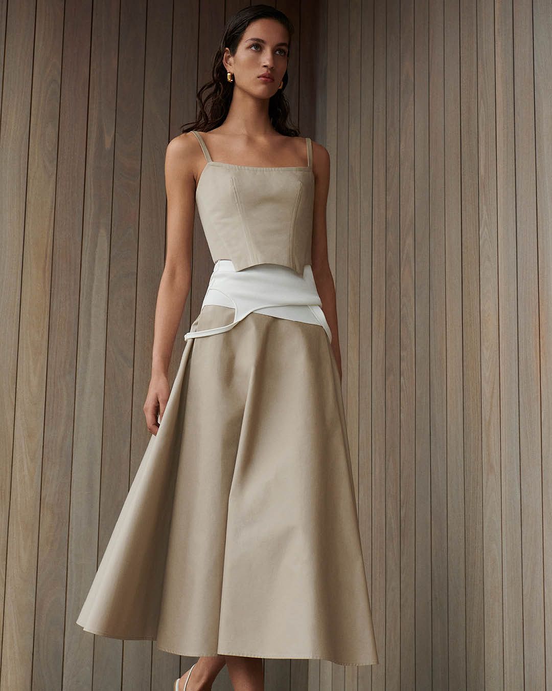 Reflecting the aesthetic codes of Summertime dressing, the collection reimagines distinctive silhouettes through a balance of proportions, bespoke detailing, and alluring prints.