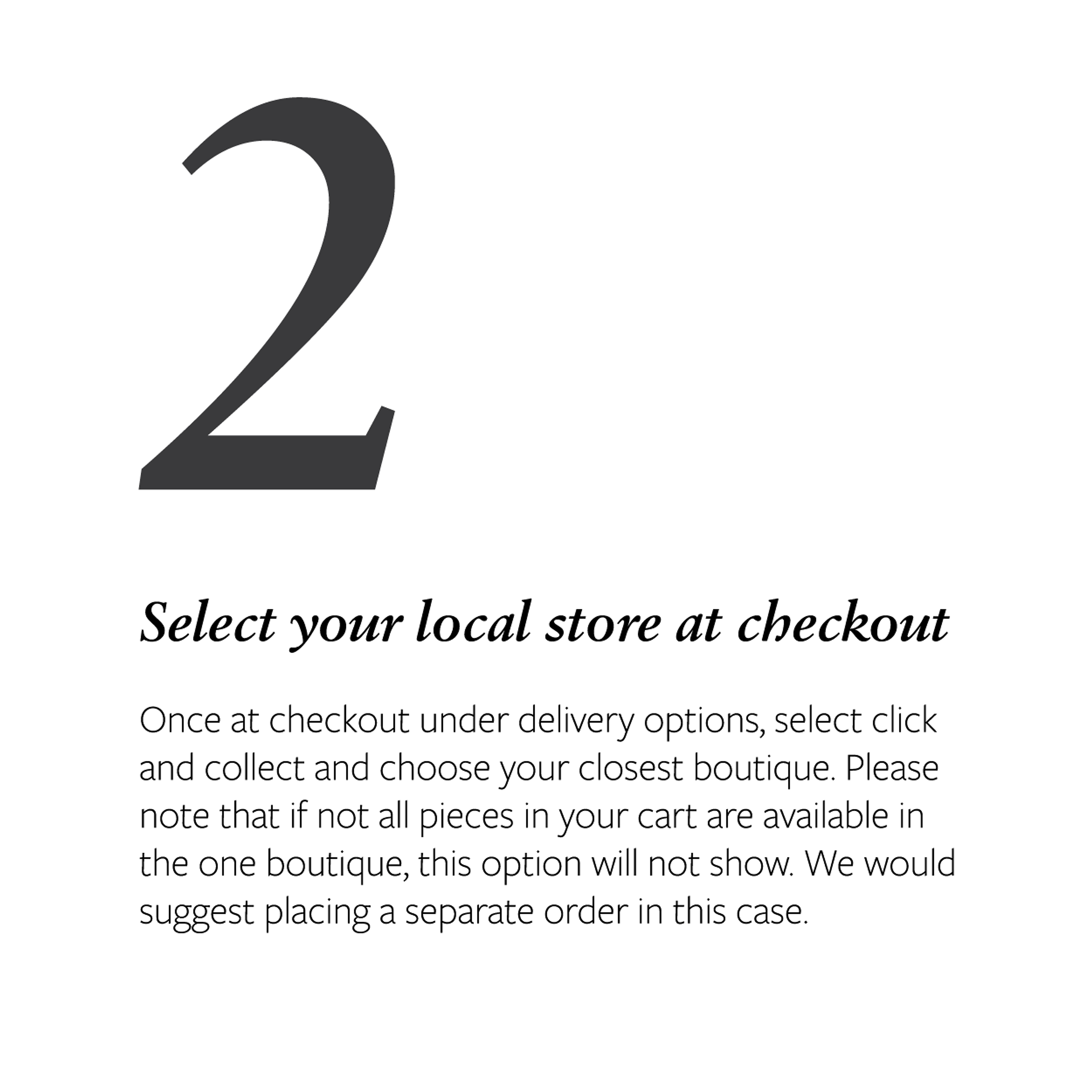 Shipping & DeliveryOnline ReturnsBoutique Returns & LaybySize GuideFAQsCLICK AND COLLECTOur complimentary click and collect service allows you to order your pieces online and collect them from your nearest Scanlan Theodore boutique.How Does It Work?Frequently Asked Questions