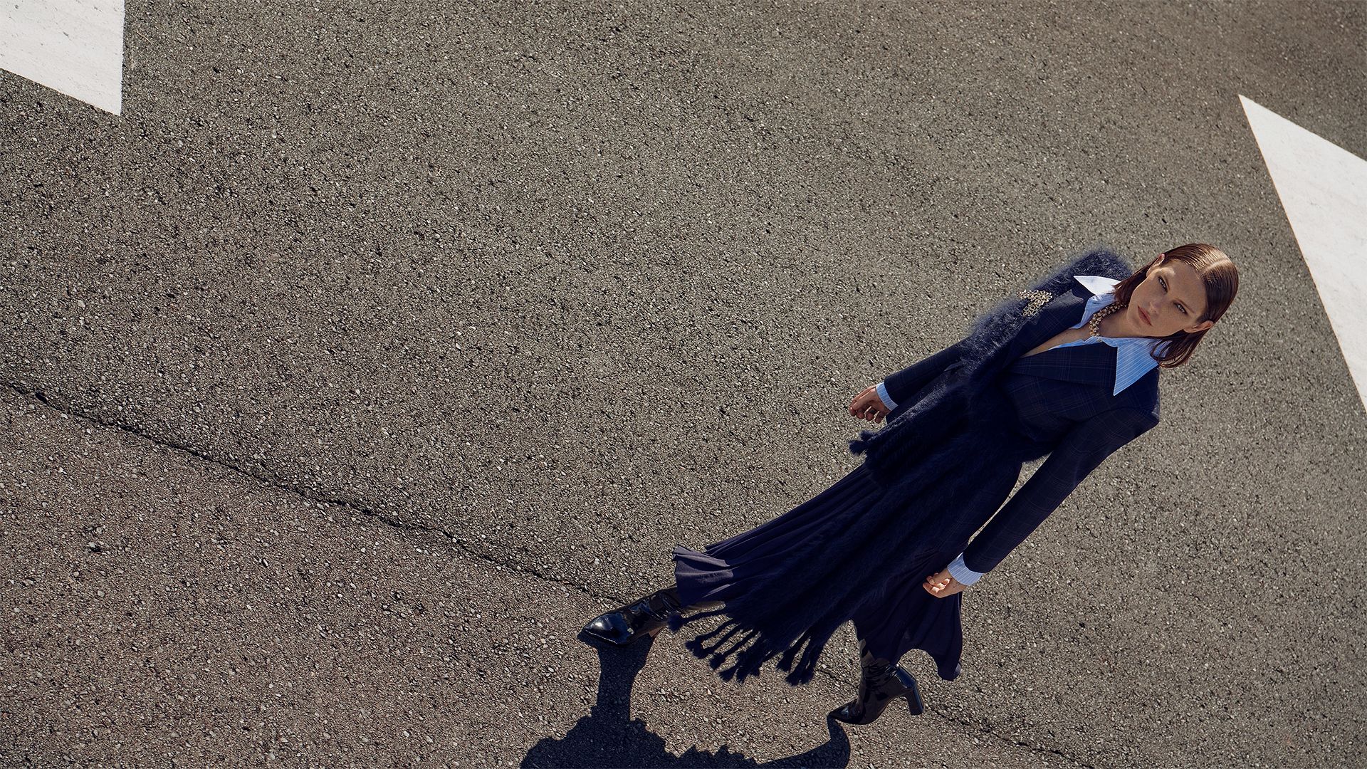 Wool Barathea Loose Jacket, Wool Barathea Slim Trouser, Silk Stretch Shirt, Mary Jane 9.5