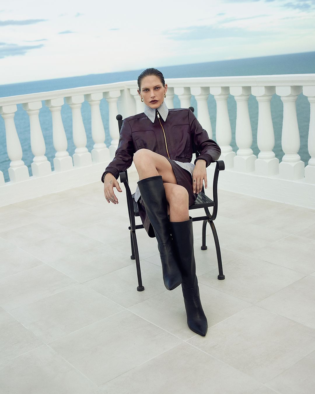 Leather Bomber, Leather Short, Stripe Tailored Shirt, Btk Stretch Boot 8.5
